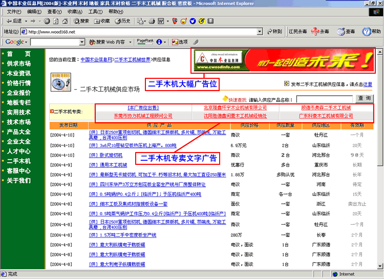 中國木業(yè)信息網(wǎng)二手木機市場廣告尺寸及位置示范