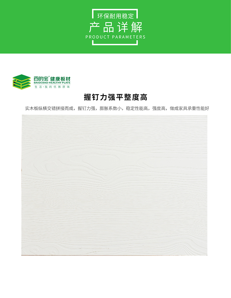 百的寶健康板材 杉木芯18mm E0級(jí)環(huán)保生態(tài)板衣柜家具板材 深雕暖白 【百的寶板材的品質(zhì)保證】 檢驗(yàn)報(bào)告:百的寶板材銷售的產(chǎn)品都經(jīng)質(zhì)量監(jiān)督局檢驗(yàn)合格。 防偽查詢:每張百的寶板材都會(huì)有防偽標(biāo)簽,每串防偽碼都是。 專賣店授權(quán)書:每個(gè)專賣店都經(jīng)總公司授權(quán)方可銷售。 公眾號(hào):百的寶板材(bdbbc2013) 板材十大品牌百的寶板材官方網(wǎng)站:http://www.baidbao.com/ 全國免費(fèi)服務(wù)熱線:400-8635858 ———————————— 中國板材十大品牌|中國板材10大品牌|中國十大板材品牌|板材十大品牌| 板材10大品牌|中國生態(tài)板十大品牌|定制板材十大品牌|中國定制板材十大品牌| 板材品牌|板材|健康板材|板材加盟|板材代理|板材招商|衣柜板材|生態(tài)板材 懂得愛自己 為愛家的人打造潮流家居 家居要環(huán)保 就選百的寶